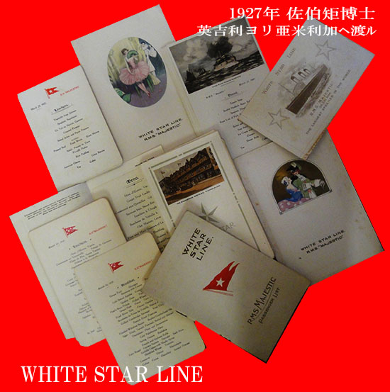 客船メニューについてはこれまである程度扱ってきたつもりですが、佐伯博士旧蔵品の場合、マジェスティック号とヴェストリス号について、自らが利用した1 等客船のメニューだけでなく、同日の2等客船のメニューを入手しているのがいかにも栄養学者らしい特徴です。2等客船の食事内容は決して質素ではなく、むしろ 1等客船の食事の過剰なことに驚いたのは、二つを見比べて初めて気づいたことでした。