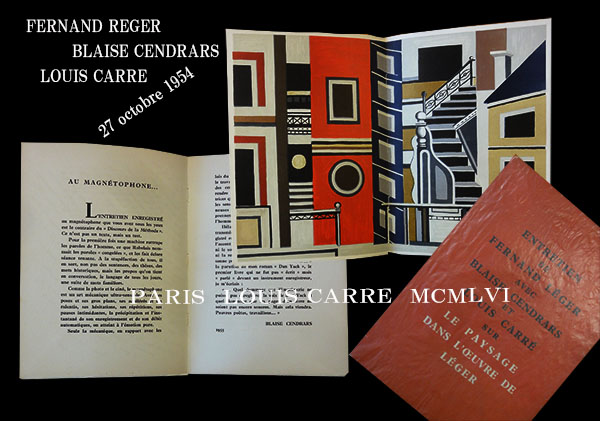 で、こういう時に限って、もう絶対に手を出さないゾと心に誓っていたような「売りにくい」品筋についつい手を出してしまうというのもダメな時にありがちなお話しでありまして、今週の1点目がそれ。確かにとても良い本。華があるし、何と云っても世界共通の価値をもつものです。がしかし。レジェもサンドラールも日本人には受けない。全然受けてない。多分これからも受けない。なのにその割に高い。何せ世界共通価値ですから。ま、でも日本では売れませんわな。なのに。ですよ。なぜ。どうして。売れないと分かってるのに買ちゃうの!? …… というモンダイの1冊、『Entretien de Fernand Leger avec Blaise Cendrars et Louis Carre sur le paysage dans l'oeuvre de Leger』がそれ。パリの高名なギャラリー ルイ・カレで1954年に開催されたレジェの個展「le paysage dans l'oeuvre de Leger」に際して行われたレジェとルイ・カレ、レジェと親交の厚かったブレーズ・サンドラールと云う3人での対話をまとめ、1956年にパリで出版された軽装判の書籍です。ルイ・カレは日本ではあるいはアルヴァ・アアルトが手掛けたルイ・カレ邸で知られているかも知れません。旅を枕のアナキストにして現代詩の先駆者、前衛芸術家との親交でも知られるブーレーズ・サンドラール、そしてフェルナン・レジェという、私の頭の一部分はそれだけでちょっと嬉しくなるメンツではあるのですが。