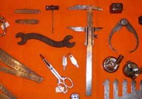 ■パリからの新着品、続報です。自分がこれまで付けてきた価格にしばられ、価格が急騰した紙モノを買いあぐね、絞りきることができなかった挙句、苦し紛れというか悔し紛れというか、煎じ詰めれば“破れかぶれ”で仕入れたのが「金属・道具系」の品々でした。考えてみると「印刷解体」と題して活字その他道具類を売ってみたりしたのも、元々「金属系」「道具系」に魅かれるところがあったからなのかも知れません。ノギスあり目抜きあり金型あり、とりわけ掌に収まるメジャーは優れもの。とても単純なつくりでありながら高い機能性を備えています。単純なつくりであるということは、誰でもすぐに構造が分かり、いつでも自分で簡単に直せるということで、常に身近にあって使う道具たるもの本来こうあるべきではと、つくづく感心させられたものです。とすると、私にとってパソコンはまだまだ全然道具になっていない、ということになるわけですが。