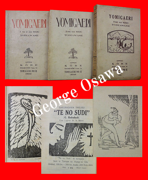 『YOMIGAERI』は後にマクロビオティックの提唱者となる桜沢如一、海外ではジョー・オオサワとしてその名の知られるその人がまだ20代半ばだった大正8(1919)年に創刊したローマ字雑誌です。1巻1号より大正11(1922)年の4巻12号まで揃い29冊が合本3冊の姿で入荷しました。