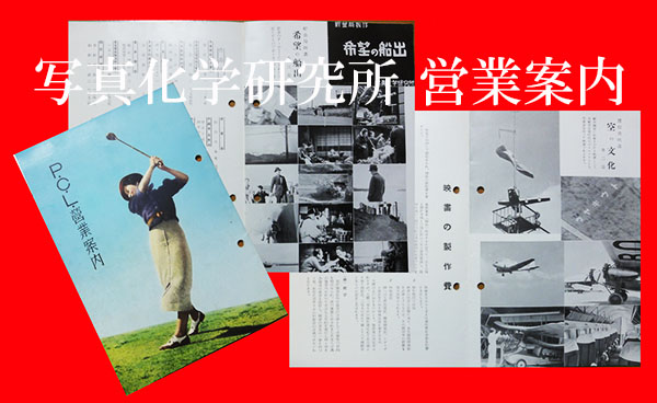■「何だこれ。ゴルフ場の営業案内か?」と市場で古本屋さんたちみんなが思った『P.C.L.営業案内』。云うまでもなく私も「みんな」のうちの一人だったわけですが、開いてビックリ映画関係でした。「P.C.L.」はPhoto Chemical Laboratoryの略で、「株式会社写真化学研究所」のこと。つまりこちら、昭和4年に設立され、後に東宝に吸収されることになる映画会社の営業ツールだったわけです。刊期の記載がありませんが、1932~1933(昭和7~8)年頃に発行されたものと見られます。→町名変更に関するご指摘をいただき、「1936~1937年頃」に訂正いたします。末尾の「追記」をご参照下さい。