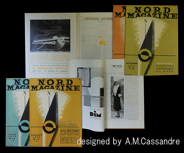 国際寝台車会社が誇る欧州豪華列車のひとつ、「北方急行」に相応しく、雑誌の内容は美術の新潮流、文学批評、ファッション・流行関係記事、映画や新譜レコードの紹介などかなり教養主義的(1929年4月号の巻頭記事は「スノビスム礼賛」!)。組版や写真にも吟味がゆきとどき、時々カッサンドルのポスターデザインを使った広告なども見られるなど、内容も充実したこの雑誌、小店でも扱うのは初めて。カッサンドル関係は海外でも入手が難しくなってきているようです。現段階では1929年から1933年まで、発行年別に3冊から8冊の一括販売を考えています。