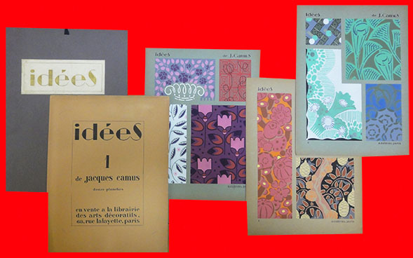 ■これまたフランスで発行された図案集で、小店では2度目の入荷となりました。ジャック・カミュ(Jacques Camus)の『idees 1』。こちらも発行はフランスで、無刊期ですが、海外の古書店の情報によれば刊行は1922年、プレートは全て石版多色刷で12葉で揃い。