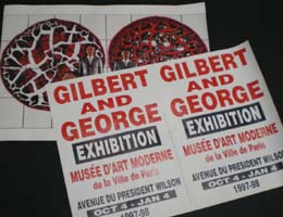 ■さて、ここでやっと新着。なのですが。先週からこれはもしや??…と思っていたのがホントになって、どうやら日月堂、スランプに陥った模様です。いやっ、本当に、市場で買えない。今週の釣果は昭和30年代頃の古い便箋と封筒(なかなか凝ってはいるのですが…)、三越が発行した龍村平蔵の錦織図案集(一応、木版・手彩の図版が貼込まれているのですが…)と他にカタい本がしばりで三本程度。全然ピリっといたしません。まずいです。で、自宅に積んであった紙モノを改めてみるとこちらの方が余程面白く、画像はすっかり忘れていたポスターの山から出てきたギルバート&ジョージの大型の冊子。1997年、パリで開催された展覧会に際し、ポスターを兼ねて作られたのではないかと思われます。売りに出すまでにはまだ少々時間がかかります。心中密かにカウントダウンしてアセリを増す目録の締め切りと脱しがたいスランプとに、「ええーいどうとでもなれ」とどこか破れかぶれでハイな気分に至っております。思えば春は、アブナイ人にとって一番アブナイ季節であります。