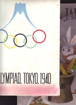■GW(期間の営業日程はまだ未定ですが…すみません)突入までの間、店は火・木・土曜日12時~20時で営業いたします。 ■国民投票法案が衆議院で可決された2007年4月13日(の金曜日!)に市場で落札したもの。その①は1937年に国鉄省が発行した『TRAVEL IN JAPAN』の三冊。日本の文化や観光スポットを豊富な写真と英文とで紹介した対外宣伝誌です。例えば手描きのタイポグラフィで「sport」と題され、体操する学生の列を極端な遠近法で撮影したセンター見開きなど、当時の対外広報誌らしい写真使いが随所に見られます。同時に開催が決定していた札幌冬季五輪を意識してか、「日本のウィンタースポーツ」というリーフレットが挟まれているものもあり、そして表四には、原弘がデザインした五輪マークが配されています。国を挙げての一大イベントとなるはずだったオリンピックも万博も、しかし太平洋戦争の突入で夢幻に終わり、そこで成績を残せたはずの優れたアスリートたちもまた戦場に散っていったことを、例えオリンピックが開催されてメダリストになったとしても、自らの国の旗を掲揚することのできなかった人たちがいたことを、いまの私たちは知っています。