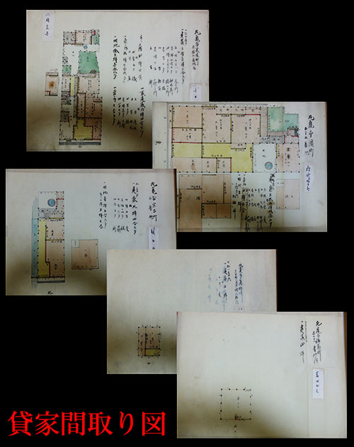 全体を眺めていると、町によって家屋の標準的な面積が異なっていたり、厠というのは1軒毎に備えるのではなく、いわゆる共用部分をつくってそこにまとめて設置する例が多かったり、いまで云う家屋の原状には戸板や欄間などが含まれる一方、竈や台所、風呂などは原状に含まれていないなど、意外な発見もたくさんあります。壁と屋根に板戸1枚の掘っ立て小屋の借主に女性の名前があるのを見るれば何だか胸も詰まります。