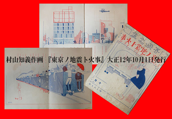 ■この本、最後に市場で見たのがすでに4~5年は昔のこと、私の記憶にあるなかでは3度目の入札でようやく落手できました。小店としては非常に珍しく、上に続いてこちらもまた絵本となりました。『子供之友』シリーズの1冊で、村山知義・武井武雄等作画『東京ノ地震ト火事(トウキヤウ ノ ヂシン ト クワジ)』。