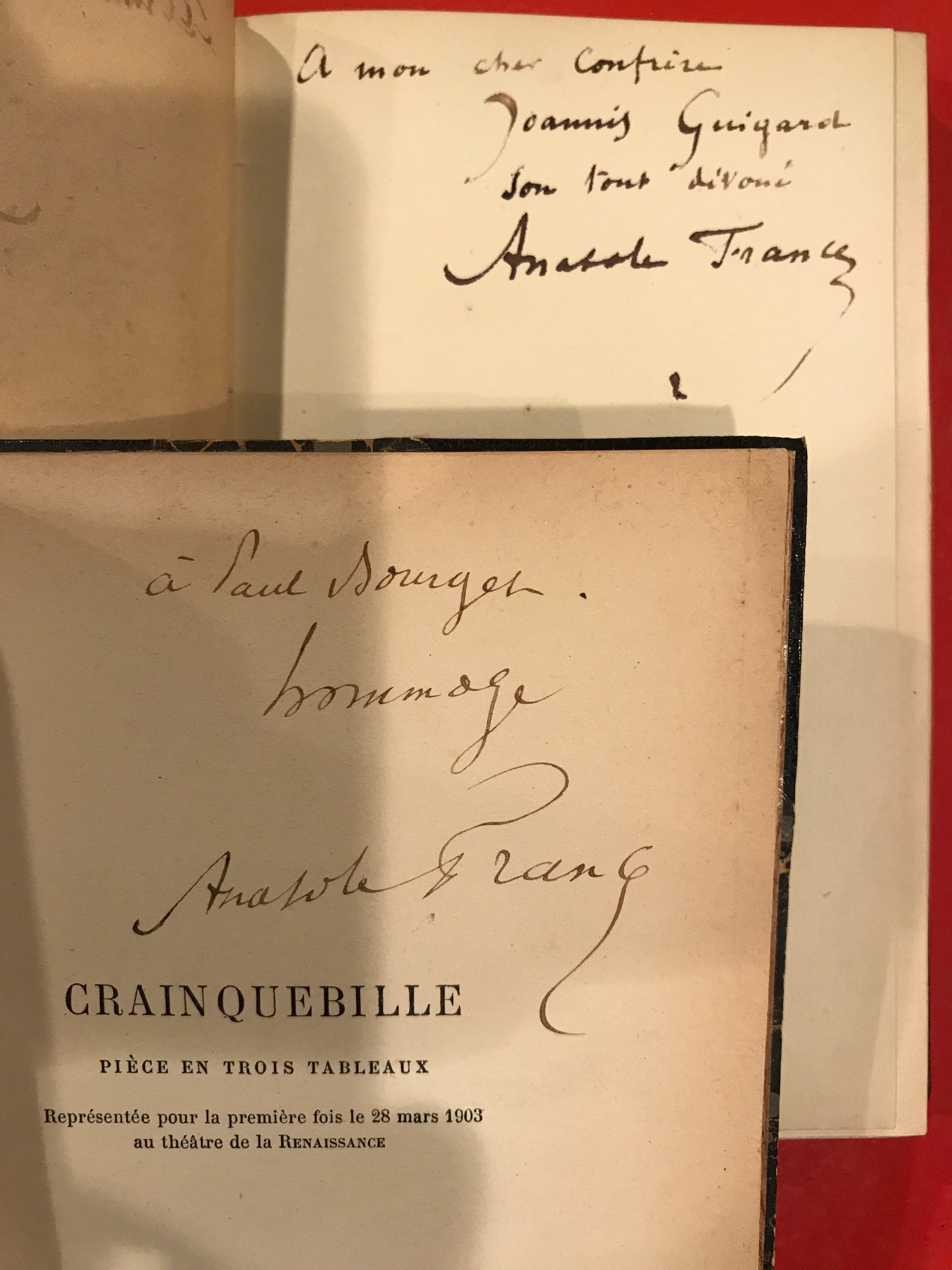 ■ミュシャの挿絵本『TAIS』等と一括で落札したアナトール・フランス研究家の蔵書整理が二段階目に入ったところで、仏文学者・山田珠樹の旧蔵書が出てくるかと思えばアナトール・フランスの署名入りの本が見つかるわ (ともに複数…)、もひとつ近藤信行旧蔵海外来信のひと箱からも何やら次々出てきておりまして、詳細は近日中に必ず ! いやはや うぶ口はやはり買うべきだと痛感しております。