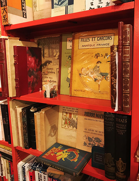 ■店の棚には久しぶりに本が入ってます。洋書は全て唄脩氏旧蔵 アナトール・フランス関係著書。ミュシャが1冊(一緒に入ってきていた1冊はsold out)、モンヴェルの絵本2冊、スタンランの挿画本2冊、この他ス手彩色入り、スイーツ付きの挿絵本多数。