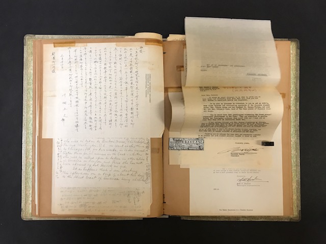 何しろ吾妻流日本舞踊の家元だけに、高弟による激励の手紙が多いのに閉口しつつも仔細に追っていくと、日本が、戦争によって途絶されていた世界との関係を取り戻すべく活動していた時期ということもあってか、国際文化振興会がロックフェラー夫妻との面会をアレンジしていたり、「アメリカ合衆国のロビイスト」で「日系二世の中では、最も著名な指導者として知られている」マイク・正岡の署名の入ったレターや米重要人物宛ての大映・永田雅一の署名入り英文書類複数他、これを機としてアメリカの中枢と関係を結ぼうとする動きの一端がうかがえます。