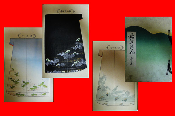 ■木版によるキモノのデザイン画集とでもいうべきものが『裾野之花』。今回は『春之巻』1冊の入荷です。本来四季=4冊で揃いで扱われたものであり、当巻には奥付が見当たりませんが、キモノのデザイン、木版刷の色調、和綴じ体裁などから見て、明治期につくられたものと見られます。