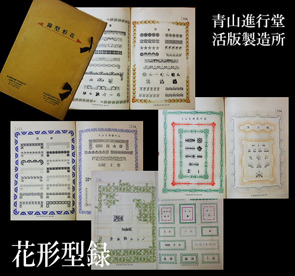 ■折角Photoshopが復活したのであともう1点。活版印刷の装飾用に販売されていた「花形活字」だけを販売用のカタログにした『花形型録』。大阪と下関に会社を置いていた「青山進行堂活版製造所」の商品カタログです。