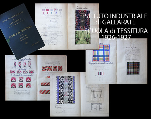 表紙には他に「ISTITUTO INDUSTRIALE di GALLARATE」とあり、ガララート産業研究所といった意味合いかと思われます。ここに顔を出す「ガララート」というのはイタリア北西部の都市の名前。調べてみると、19世紀から20世紀にかけてイタリアの繊維産業の重要拠点だったとのこと。21世紀の今日はハイテク産業で知られているようで、ここに書き留められた技術もいまはもうす捨てられていると思われます。実用の時代を超えて生き残ったこれらは、しかし世界に1冊しかないとても美しい書物となって、いまも存在してくれています。
