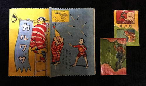 ■来週、店は普段と同じで火・木・土曜日の12時~20時で営業いたします。但し、台風の進路によっては臨時休業する日もあるかも知れません。雲行くがあやしい場合は、お電話で在席をご確認の上でお出かけいただければ幸いです。何卒よろしくお願いいたします。 ■画像は小さな絵本。『カルワザ』はサーカスの曲芸を描いた絵本で布製。向かって右は2冊とも大正5(1916)年に大阪で発行された『動物園』と『花咲ヂヂ』で、こちらはちょっとした脱力系。