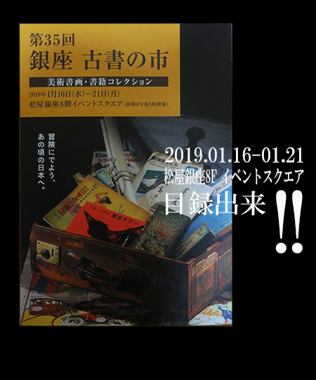 ■鬼に笑われない程度に来年の予定についてもう少し。1月13日からの週は松屋銀座で開催される「第35回 銀座 古書の市」のため、月曜日から運送・陳列・会期スタートというスケジュールで、実質年明けすぐに即売会体制となります。