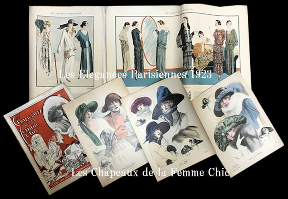 いずれも1923年の発行で、雑誌=挿画入りテキストの他に未綴じ、手彩色のファッションプレートが入るスタイルも共通。