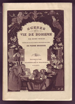■新着情報もようやく復活。画像上は、洋書会大市で落札してそのままになっていた『ラ・ボエーム』。1927年、フランスで刊行された400部の限定本で、ピエール・ブリッソーの銅版画25葉が綴じこまれています。表紙も含め、銅版画は全て黒の濃淡によるもので、シックにまとまっています。ブリッソーは『ガゼット・デュ・ボン・トン』でも活躍した人気イラストレーター。『ガゼット~』では比較的大味な印象があったのですが、これを見るとやっぱり上手いもんだと評価を改めました。ちなみにこの本、「K.nojiri」と記名があり、学生時代から愛書家としてならした大仏次郎(野尻清彦)の旧蔵書。「読む」より「所有する」タイプの愛書家といわれた大仏の元にあっただけに、状態は良好です。 ■画像下の洋書豪華本のようにも見える冊子類。こちらは絵葉書帖のかたまりです。ダンボール箱一つ分、12冊くらいが一挙入荷。いずれも大正~昭和はじめのものと思われます。中に入っている絵葉書より「この絵葉書帖が欲しい!!」と思うこと度々だった日月堂にとって、これでようやく欲求も満たされたというものです。中を開くと飾り罫あり、切り込みの入り方も数種、切り込みのないものもありと多様。絵葉書帖としてのみならず、写真帖やスクラップ・ブックにと、使い勝手もアイディア次第。この他、戦前の演劇関係スクラップ帖約10冊、エルテ、タマラのそれぞれ洒落た洋書、資生堂の包装紙など、新着品は近日中に店に出します。来週からは「雑書目録」にも手を入れる予定。併せてよろしくお願いいたします。