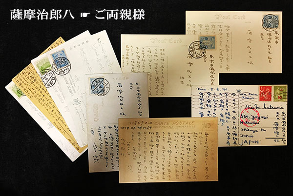 これら5通に代々木の薩摩邸に宛てて出された薩摩家の人々の自筆ハガキ4通をつけた9通での販売です。