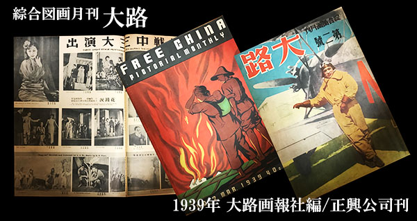 ■珍しい中国語版のグラビア誌が入荷しました。『総合図画月刊 大路』第2号(1939年3月号)。香港にあった正興公司が経営し、上海にあったアメリカ企業が印刷を担い、上海まで逃げ果せたユダヤ人の記事を写真とともに掲載し、「日本侵略者的傍徨與孤立」という論説や「抗戦中三大演出」と題した政治的演劇の役者や舞台の写真、ソ連の教育機関に取材した「蘇聯列寧格勒少年先鋒宮」の写真と記事など、1939年当時、中国都市部を舞台に複雑に交錯した各国の思惑が詰まった(と思われる)1冊です。