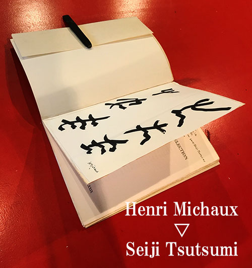 ■「アンリ・ミショーの肉筆ドローインク入り」だけであったら果たして入札していたかどうか。1979年に英訳で限定300部が発行された『Henri Michaux : A Selection』にはフランス語でSeiji Tsutsumi=堤清二宛ての献呈識語が入っていることに惹かれ、少々粘ってパドルを上げ続けた結果、落札できた1冊。