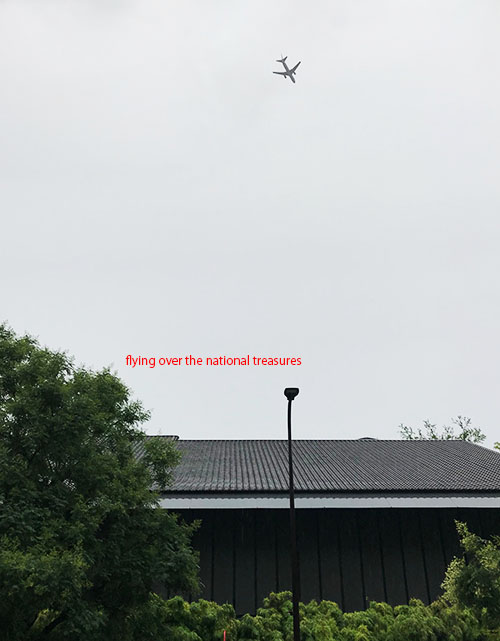 ■画像は小店ベランダから眺めた旅客機の機影。大きな物体が大きな音をたてて、国宝複数を有する根津美術館の真上を通っていきます。コロナや豪雨より経済、国宝よりオリンピック。減税どころか増税申し入れ …… もうほんとに色々な場面で「まぢですかっ!?」と思う日々。