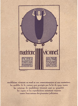 ■店で汗流す予定だった今週。しかぁーし。9/6(木)は台風で誰も来ず、わっさわっさと風に翻弄される根津美術館の林の様子に危険を感じ早々に店を撤退…かようにして貴重な営業日一日がツブれてしまい。しかも今週9/8(土)は午前中市場のため13時からの営業とさせていただきます。何卒ご了解いただけますよう…。その分どこかで頑張らないとね。といいながら。すみません来週も火・木・土曜日の各日12時~20時の営業です。 ■当HP、これまで検索可能なのは「雑書目録」だけだったのですが、トップページにgoogleを置くことで全ページ対象に検索できるようになりました。画像入りの在庫目録「OLD,RARE,UNIQUE」の各ページでは、タイトル横にキーワードも添えていますので、これらもヒントにして是非お試しください。今週は「A LA CARTE」にバレエ・リュスと舞踊関係の数冊を追加いたしました。今後も 随時追加してまいります。 ■明日・明後日と市場で立て込みそうなので、まだ店に出していなかったものから新着品を前倒ししてご紹介。上の画像は雑誌としては凡庸な『art et decoration』1924年4月号。ああまたコレねと落丁切抜きチェックして値段を書くべく鉛筆構え裏表紙を見やればやっ、ややや。この洒落のめした広告は…何と「マドレーヌ・ヴィオネ」のパリはリボリ通りにあったアトリエの広告ではありませんか!図案の罫下には、「THAYAHT」つまり未来派のアーティスト、タヤート(=タイアート)の署名もあるゾ。かつて、『ガゼット・デュ・ボン・トン』のヴィオネ&タヤートのプレートを扱ったことはありますが、これは初めて。慌てて手元の資料『ヴィオネ』(ベティ・カーク著)を開いて見るとこの図版、当書の扉に置かれているほか、コレクションの案内状、N.Y.でのコレクションの広告などにも使われていて(紙モノの図版有り)、テキスト部分に変奏を加えつつ、さまざまに使われていたことが分かります(ざっと見た範囲では、この図版とタヤートを結び付けるクレジットはない?ような??)。マドレーヌ・ヴィオネは、バイアスカットの創始者であり、即ちコルセットからの身体の解放と衣服の近代化とに寄与した偉大なアーティストであり、そのアトリエで働く女性たちの福利厚生にまで配慮した開明的な経営者でもありました。そもそも私が1910~30年代の事象に分け入り始めたきっかけが、いま思えばバレエ・リュスとヴィオネだったように思います ― 「女性が笑うとき、そのドレスも笑うように作らなければ」― ヴィオネのこの言葉には、いまも深く胸を打たれます。