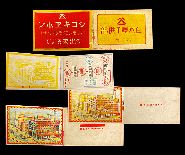 ■来週の営業のお知らせを手短に。来週は市場への大量出品のため 店の営業は2月23日(火)と27日(土)の12時~19時とさせていただきます。普段なら営業日にあたる25日(木)は休業とさせていただきます。どうかご注意のほどお願い申し上げます。 ■画像は『バクダン小僧』と一緒に入荷した小型絵本。印刷の4色分解の意味を木版の順序刷の要領で説明した冊子。印刷技術についてよく知らない大人にとってもためになります。白木屋製。よくできてます。