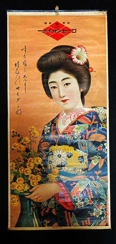 ■画像はビールのポスターについてきた甲府は塩山の鉱泉サイダー(コーセンサイダー)のポスター。美人ポスターが多いのはアイドルのポスターを好む人が多いのと同じ感覚なのだろーか?