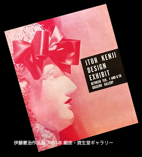 ■画像は1951年、銀座の資生堂ギャラリー(当パンフの記載では「資生堂ギアラリー」)で開催された商業美術家・伊藤憲治の作品展のパンフレット。瀧口修造と山名文夫という2巨頭の長文寄稿あり! 展示品目録62点、作品図版6点! レア!