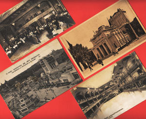 ■先週落札した分と、自宅で寝たままになっていた分とを合わせて靴箱約一箱半ほどの嵩となった戦前の外国絵葉書、先ずはざっとより分けて、“いいとこどり”したのを店に出し始めました。画像はその中から。上段・下段は二枚とも『Admiralspaiast Berlin』とクレジットのある絵葉書。真面目に辞書を引くと「海軍省御殿」…ではなくて。という名前の総合娯楽施設。試しにネットで検索してみると、この「アドミラルパラスト」、戦中の一時期にはクラシックの殿堂とでもいった役割を果たしていたようですが、この絵葉書はもっとラフ。一枚は細部までに凝りに凝ったアール・デコ装飾、女性のファッションもデコ調のダンスホール、そしてもう一枚は何と、三層のテーブル席(レストラン)に囲まれたアイススケート室内場です。ともに未使用。残る中段の二枚はともにパリの『アール・デコ博』の記念絵葉書。左はアンバリッドから見た眺望、右はベルギー館を収めたもので、裏面はともにフランス語がびっしりと書き込まれています。こうして見ると絵葉書は確かに立派な資料。あまりの高騰にしばらく腰が引けていたのですが、また少しずつでも落札していかないとダメですね、これは。 ■しばらく手が止まっていた「A LA CARTE」「PRINTED MATTER」にもまたボチボチ追加しております。「A LA~」には前衛美術関係の洋書を、「PRINTED~」はフランス物を中心に紙モノ・額モノを追加していく予定です。このあたり、ご覧いただくにも多少未整なところがあると思いますが、年内から年明けをめどに、再度、構造的に手を入れる予定です。いましばらくこの形式でお付き合いください。新着品には白っぽい本ですが、建築・美術・デザイン関係の書籍100冊強もありまして、こちらは先ず店の棚に入れてから、順次「雑書目録」にアップしていきます。11/16は西部支部の大市で入札してきました。結果は来週にならないと分かりませんが、釣果は来週の当ページでご報告いたします。釣果ゼロ…の場合は一足早く自宅の大掃除と相成ります。どちらが幸いかは、もはや私にも分かりません。