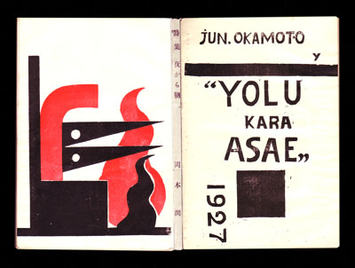 先ずは上の画像、『機械座・第一号』と『Cine(シネ)第9号6月版』はいずれもペラっペラの雑誌―なのに―落札品中二番目の高額品。オソルベシ。『機械座』は、大正11年名古屋で発行された詩誌『青騎士』の同人でもあった斎藤光次郎を発行人に、おそらく古本好きの若い方には“『名古屋豆本』の人”として知られているであろう亀山巌、近藤東や犬飼稔らを同人とする名古屋モダニズム系の詩雑誌。『機械座・第一号』の発行は昭和2年、「The Theater Machin」と欧文タイトルまで添え、表紙の絵は“テオフイル・ド・カン”の“ポーランド型潜行艇”という作品だとあります。亀山巌といえばもうひとつ、稲垣足穂の出版物装丁者としての顔がありますが、『機械座』とうタイトルにしろ、第一号の装丁(弧を描いて組まれた欧文タイトルや星印など) にしろ、これまたいかにも亀山―足穂的世界。一方、『Cine』は日本におけるシュルレアリスム推進者のひとり山中散生を編集・発行人に、やはり名古屋で昭和2年に創刊・発行された前衛芸術誌です。第9号6月版の目次には、ツァラ、エデュアール、ピカピア、ガートルード・スタイン、フィリップ・スーポーの名前が並びます。日本からは北園克衛、阪本越郎、そして名古屋の亀山、折戸彫夫らが寄稿。山中とツァラやエデュアールとの直接的な交流は昭和8年頃からとされているようなので、ここに採られた翻訳原稿は間接的なものだと思われますが、戦前の極東の島国の一地方都市で、実はとんでもないことが起こっていたようです。この他にも雑誌『ウルトラ』があり、山本悍右、下郷羊雄らの前衛写真運動がある名古屋のモダニズムとは…仕入れ=入札まで出たとこ勝負の浅薄かつ軽薄な小店の場合、勉強はもれなく後からついてくるのでした。これですからねぇ。そもそも処方箋が書けない……さて次にまいりましょう。 ■『詩集 夜から朝へ』。岡本潤著、岡田龍夫・矢橋丈吉装丁・挿画入、昭和3年発行・初版。装丁と挿画7点はリノカット・オリジナル版画、収められた詩も活字を逆さに組んだり記号を使ったりした視角詩的なものが多く見られ、大正15年の斎藤秀雄『蒼ざめた童貞狂』、昭和元年の萩原恭次郎『死刑宣告』と続いた前衛的詩画集の系譜に連なる一冊だといえるでしょう。ところが、とくにここ数年の、先輩格の2冊に対する市場での注目―おそらくはこの二冊の持つ、奇矯ともとれる視覚的要素から-と比べると、『夜から』はいまのところまだそこまでいっていないような印象があります。原色を多用した装丁、どの頁も破天荒といっていい組版、勢いに任せて彫ったかのようなリノカットなどをまとった『童貞狂』『死刑』と比べ、『夜から』は全体として確かに地味に大人しく仕上げられています。ほぼ同時代とはいえ、この三冊の発行の間には時代の変化があり、それが影響を与えたものか、浅薄皮相な古本屋には確かなことは何もいえません。それでも、この大人しさを、過剰な毒気をそぎ落とした退屈と見るか、幾つかの試みを経て、荒々しさを飼いならして得た洗練と見るか-なんてことを考えさせてくれるのも古本ならではの面白さでしょう。この本の多くについては、実はお客様のご教示に負うものです。昨日までの大市の出品点数は6,000~7,000点。そこから一体どのような視点でモノを選び、価値を判断するか。二つの眼だけでは到底足りない市会であり、店を通じてのお付き合いから新たな眼をもたらして下さるお客様という存在に、改めて感謝する市場ではありました。処方箋は、いつだって他でもない店にある。 ■新着品はこの他、戦後の百貨店各種宣伝印刷物いずれも美品1箱、A・ロビダの明治期翻訳本『世界大進歩第二十世紀』(銅版画挿絵入) 他一冊もの色々から薩摩次郎八の直筆原稿、あえて伏せておくフランスものまで。今月いっぱいはどうしても目録に時間も力も割かれますが、少しずつでも店頭でご紹介いたしたく-どうしたところで来週もヘロヘロだぁ。