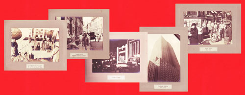 ■先ずは大切なお知らせ。本日7月12日(土)は店の営業を午後2時からとさせていただきます。すみません。再度市場行かねばならず已むを得ず…何卒ご容赦のほど。来週は火・木・土曜、各日12時~20時で営業いたします。週にたったの三日なんですからねぇ…真面目にやりますスミマセン。 ■一般的にいってそろそろ夏休みの計画も固まりつつある頃かと思いますが、節約に節約を重ねても燃料サーチャージのお陰で来年のパリ行きも覚束なくなりつつある自分には国内旅行さえ夢のまた夢だぁ~。なんてことを考えていたもので。今週の新着品は先ず、『MEMORIES OF MY TOUR』と表紙に金箔押し、三方に金を刷いた分厚く立派な写真アルバム。昭和5年竣工、大阪商船所有の「りおでじゃねいろ丸」による船旅の記念品です。同客船上で行われた「赤道祭」(=画像左端)から始まり、インド各地を経てケープ・タウンを回り、ケニア、スーダン、エジプトと寄港の後ようやくロンドン入り。それでもまだ旅は続いてベルギー、プラハ、ドイツ各地、ローマ、ベルリン、ポーランドと欧州を巡った後にカナダを経てニューヨークから北米各地を訪ね、ハワイに立ち寄ってやっと日本に帰国。という旅程がこの一冊で一目瞭然。牛が寝そべるインドのオフィス街から摩天楼のニューヨークまで、気候風土も文化も慣習もいや文明さえ異なっていた土地をいっぺんに経巡るって、一体楽しいのかつらいのか…。これまでも戦前の洋行ガイドブックやパンフッレトなど、それなりに目を通してきたつもりですが、その旅路のこれほど遥かなことを、このアルバムほど強く感じさせてくれるものはありませんでした。洋行命がけ…「燃料サーチャージもユーロ高もまだまだ全然軽い!」と、渡航というものが色々な意味で「重い」ものだった時代によって諭されてしまった格好ですね。はい。