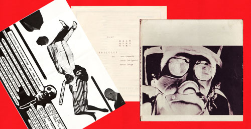 ■今週、店にだぁーれも来ないのは何故? 思い当たるフシがあるとすれば…すでに興味は先週さわりをお知らせした秋の企画展に??? うぅーむ。ウチならあり得る。ですが、みなさま。分けても今年の企画展は「余技中の余技」でありまして来週も店は火・木・土曜日の各日12時~20時で営業いたしますので。ええ。なかなかフクザツではありますが。はい。ご来店の程、よろしくお願いいたします。 ■先週に続いて金曜日の市場はワンフロアーのみ。夏の荷枯れが続いているだけならいいのですが。ともあれ最も落手を願っていたものが落とせたのは幸いでした。二年ぶり、二度目に手にしたそれが上の画像、1969年、翌年に控えた大阪万博の記念イベント『クロス・トーク/インターメディア』のプログラム等一式(正方形の紙箱に10点の冊子・パンフレット等を収めた完揃い)です。このイベント、芸術とテクノロジーの融合をテーマに、前衛音楽を中心として三夜連続で開催された大規模なもので、実験工房、フルクサス、グループ・音楽、草月アートセンターといった戦後日本の前衛芸術シーンを包括したかのような内容と、これに連なる内外主要人物を網羅した顔ぶれが揃っています。企画・構成は秋山邦晴、ロジャー・レイノルズ、湯浅譲二。『エッセイ』と題された冒頭の冊子のそのまた巻頭を瀧口修造の一文で飾るのは当然の人選というべきでしょう。イベントとこのプログラムについての驚くべき詳細は、以前に一度ご紹介したWeb版特集目録『机上のK.K氏』(このページのNo.33)をご覧いただければ幸いです。