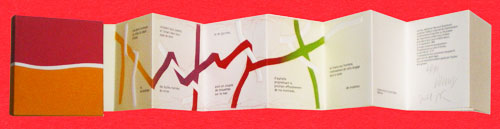 ■お決まりの営業ご案内。来週も店は16日(火)・18日(木)・20日(土)の各日12時~20時で営業いたします。その後、月内の営業日は「一新会大市」というのがある関係で、23日(火)、27日(土)、30日(火)を残すのみとなります。催事(後述)に気をとられている皆さま、店もよろしくお願いいたします。 ■店もよろしくというからには「新着品も大丈夫なんだろーな。」という声も聞こえそうで。はい。お陰様で新古本中心ですが、今週は久しぶりの大量入荷。問題は、値段をつけて棚に出しデータを入力する私の手が追い付かないだけでして。そんな今週の新着品から、先ずは『CHEMINIMENT(=歩み)』と題された上の画像、左端の函のサイズで11.5×10.5cmの小さなアーティスト・ブック。1985年にパリで発行された限定75部本です。装丁・図版はドルネー(DORNY , Bertrand)、テキストはミシェル・ビュトール。ビュトールのテキストは、一連の“空間詩”のひとつかと思われます。奥付頁の両名の署名に加え、表2にあたる頁には1989年の日付のあるビュトールの署名があります。本文頁の色の帯が絡み合うような図版の白い部分はエンボス、着色部分の手法がどうもよく分からないのですが、エアブラシを使っているように見えます。書籍本体は開いていくと全長1m30cmに及ぶ紙(一か所貼り合わせ)の片面刷り、函は白の厚紙の上から色紙を貼り込むなど、手が込んでいます。と表層をなぞるのは簡単なわけで、ああ折角のビュトールのテキストが読めない。従って表=造本と内=テキストとの連関を理解することができない。というのは古本屋としていかにも“弱い”なぁ。