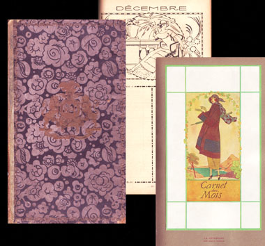 ■明日12日(日)はいよいよ「Open-House-Market」のSeries1.村上邸の開催当日。お申し込み下さいましたみなさまには、心より御礼申し上げます。準備万端整えて、みなさまのご来場をお待ちいたしております。また、Series2.鈴木邸については引き続き参加お申し込み受付中。併せてよろしくお願いいたします! ■今年は企画展があるからといって店を休まない方針。ホンマかいな。本当デス。来週も店はいつも通り火・木・土曜日の各日12時~20時で営業いたしますので、こちらもひとつよろしくお願いいたします。 ■こんな経済状況のなかで本買ってどうする…と考え始めたら一点も落とせないのが市場というもの。新聞にもテレビにも目をつむって、今週もやってまいりました市場からの新着品。金の紋章も立派な最初の一冊は、『AGENDA P.L.M. 1924』。アジャンダとは、暦に家計簿または防備録の機能を足し合わせたようなもので、19世紀に世界最古の百貨店といわれるボン・マルシェが発案、実によく考えられた宣伝媒体なのですが、長くなるので端折りまして。とにかくフランスではかなり人気のあるアイテムだったようで、タイヤメーカーやら理髪美容業界やら、さまざまな業種が発行・顧客に配布したなかで、今回のはその鉄道版。パリとリヨン・地中海方面を結ぶ鉄道の路線図と主要観光拠点のガイドに、1年365日の日付入りノート(防備録)とを合体させたような内容となっています。画像の真ん中、ノート部分の各上部にはモノクロながら毎日絵柄の変わる挿絵が配され、さらに画像右端のようなカラープレートも挟み込まれます。カラープレートを手掛けたイラストレーターは、一点一点目次にもその名前が列記されており-残念ながら私の知る名前は見当たりませんが-当時としては文字通り名前のある作家が手掛けたものと思われます。旅やリゾートが、一般市民でも背伸びをすれば“背の届く贅沢”だった時代。いま、時代はどこまで巻き戻されようとしているのか、そんな疑問が頭を過っていけません。