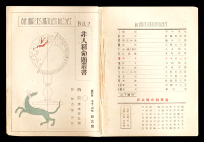 ■12日にはお陰様で「Open-House-Market Series1 村上邸」を無事打ち上げることができました。ご来場は80名様を超え、邸内の写真を撮る方あれば村上家ご当主と話こむ方あり、玄関脇に座り込んで庭木を飽かず眺める人の姿などもあって、お買い物以外にも思い思いに過ごすみなさまに接すれば、細かい作業の労もたちまち忘れてしまいました。ご来場、本当に有難うございました! 「Series2 中野区・鈴木邸」のお申し込みは23日(木)の夕刻までこちらで受け付けております。26日(日)の開催当日には、また多くのみなさまとお目にかかれますよう…。 ■わたくし少々クタビレた様子を見せているやも知れませんが、来週も店はいつも通り火・木・土曜日の各日12時~20時で営業いたしますので。くどいようですが。こちらもよろしくお願いいたします。 ■新着品のご紹介といって、毎週毎週分かったようなことを書いておりますが、舞台裏はといえば実は時間と競争しながらのさながら格闘技。つまり、毎週市場で落札して来るものの多くが-再入荷品のご紹介は避けているとはいえ-その時点では-ほとんど何も知らない・分かっていない、というわけです。で、『非人称命題叢書 西史』 (?)は昭和8年に発行された清水房之丞という人(?)の詩集。小型の薄冊ですが、その佇まいの良さといったら。頭の中は??だらけでありますがヒントはそれなりにあり①発行は「詩之家」②裏表紙に印刷された叢書目録の著者に佐藤惣之助、竹中久七の名前あり!そして③「装幀 古賀春江」!!-①をヒントに②であたりをつけ、③で腹を決めたという感じですかね。落手さえ叶えば、パソコンに向かって直ちに検索、こんな古本屋失格の私にも多くのことがほとんど即時に分かるご時世ですが、それでもしかし、「距離」にディスタンスとルビを振り、オトバイが走り、白亜層に中に発電所を見出す著者の時代精神や、装幀のグレーがかった青の深みや絶妙な位置に引かれた線の繊細さなどなど、言葉で表現し難く、画像でさえお伝えしきれないことのいかに多いことか。しかも、こんなにささやかな本だというのに、糸綴じにおける超絶技法ともいうべき技が施されており、こうしたこともやはり現物を手にしてとっくり眺めて初めて分かることなのでした。