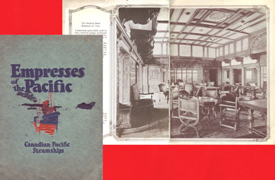 ■何ともはや。今年も12月に入ってしまったとは。このご案内の更新も、今日のが終わると年内はあと3回、店の営業日も10日を切りました。来週はいつも通り火・木・土曜日の各日12時~20時で営業いたしますが、12/16・再来週の火曜日は市場のため店はお休みをいただきます。その後は通常に戻って27日(土)まで営業の予定です。年内最後まで、よろしくお付き合いのほどお願いいたします。 ■新着品、先ずはカナディアン=パシフィック汽船の客船「エンブレス・オブ・カナダ」「エンブレス・オブ・ロシア」「エンブレス・オブ・アジア」三隻を紹介するパンフレットで1926年の発行。この当時の客船案内類は、いきおい豪華で立派なものになるために残存もし易い就航前のパンフレット類が目につくせいか、外観から内装まで完成予想のイラストで紹介されたものが多いなか、今回のこの一冊は既に就航していた客船の案内なので中面約50Pのほとんどが写真、従って実際の内装がよく分かるというところに手柄があります。船名に因んで三隻夫々に異なり、いずれも細部にまで意匠の凝らされた船内は、一等食堂から客室、書斎室、子供部屋まで、イラストで見るより実際の方が遥かに豪華だったのではないかと思わず見入ってしまいます。表紙には「Canadian Pacific Steamship」、つまり「蒸気船」とあり、1920年代半ばにあってこの点でも珍しい…のかと思いきや。改めて調べると“蒸気機関を用いて”プロペラ等による動力を得ているのが蒸気船で、広義には原子力船なんてものまでいってみれば蒸気船であり、蒸気客船としては日本のピースボートのチャーター船として知られた(…知らなかった)「ザ・トパーズ」号が奇しくも今年4月まで現役だったのが世界最後…とは今回初めて知った事実。これまで客船関係の印刷物を散々扱っておきながら、実に恥ずかしいことに。あと何年あっても知識は一向追い付かないというのに、一年のこの短さをどうすればいいのかと思う12月初めの新着品です。