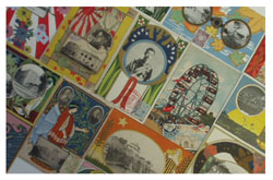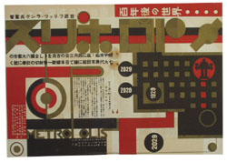 ■新着品は『ノイエ・ザハリヒカイト文学論』等「建設社」発行の本のしばり、明治時代の和本の教科書類、ロラン・バルトの著作一括はじめ、デザイン的にも資料的にも面白い築地小劇場等戦前演劇の番組表などなど、大漁でした。画像では、新着品の内、戦前映画の宣伝広告コレクションから「メトロポリス」広告、そしてエンボス加工の施された絵葉書コレクション・ファィル1冊分から、その一部をご紹介。絵葉書は、例えばウィーン分離派風の装飾の真ん中に何故か大阪城の写真があったりして、縦横無尽勝手放題な図案に一枚一枚興味が尽きません。
