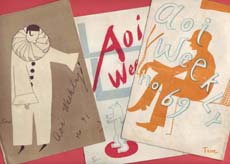 ■珍しく勤勉な日月堂、今週・来週も火・木・土曜日の12時~20時、23日も含めて営業いたします。クリスマス・イルミネーションも復活した表参道にお越しの際は、ついででいいのでお立ち寄りください。雑書目録も随時更新中! ■さて新着品。先ずは先週開催された「資料会大市」の落札品から。三越製の写真アルバムやらドイツの裸体運動の本(…つい手が出て)やらまたまた有象無象買った内、画像は戦前の映画館週報。一ヤマ落札したなかでの狙いはとくにこれ。赤坂溜池にあった映画館・葵館発行の「Aoi Weekly」で、表紙は村山知義が描いています。村山の手になるものは6種7点あり、戦前の映画館の週報はそれなりに扱ってきたつもりですが、村山の手掛けたものをこれだけまとまって目にしたのは初めてです。『マヴォ』等新興芸術運動、構成主義、左翼演劇、そして絵本など、村山知義の残した豊かな足跡からすれば僅かな一角ですが、こうしたささやかな仕事を見つけることが、小店のようなささやかな古本屋には最も相応しい仕事なのだと改めてそう思いました。