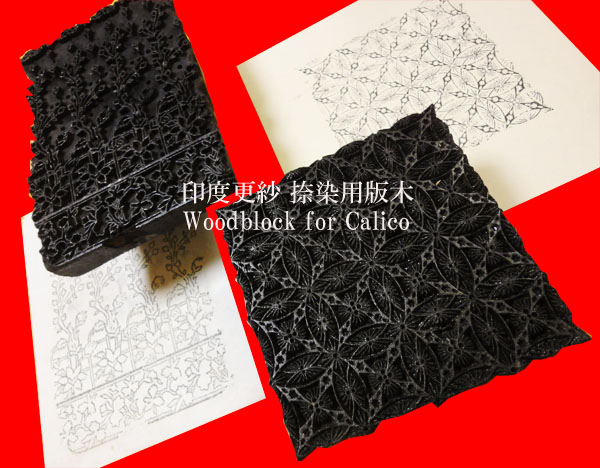 1点目はインド更紗の捺染に使用されていた木版の版木。入荷する計14個は、小さいものでも1辺が10cm前後と大ぶりなのが特徴。かなり堅牢な木材に緻密な図案を深く彫りつけており、また - 現段階では市場から持ち帰った2点については、ということになりますが - 裏側の持ち手の部分も木材から彫り出した一体成型。固い木材、反復する緻密なデザイン、さらに持ち手の形成まで、見れば見るほど製作作業の大変さが想像され、版木の前で思わず頭を垂れるのでした。